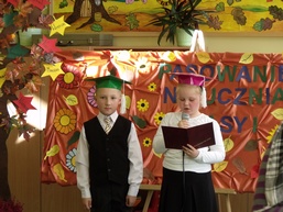 ucznia. Pierwszaki wystąpiły w pięknych biretach i w obecności Pani