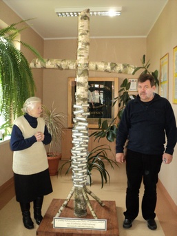 Jerzy Jelonek i dyrektor szkoły – Małgorzata Wojtkiewicz. Wystawa