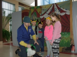 pierwszoklasiści odgadywali zagadki związane z postaciami z baśni.
