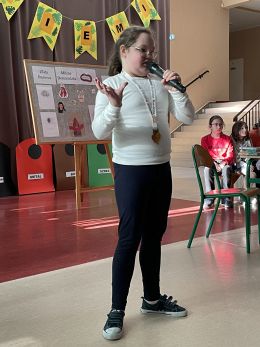 wyczytała wszystkich biorących udział i nagrodzonych w pozaszkolnych