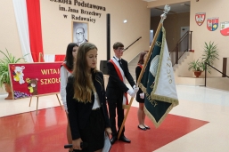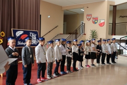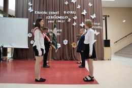 Uroczystość prowadzili uczniowie klasy VI – Lena Kudrelik i Oliwier Durecki.