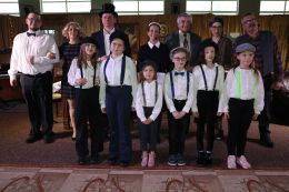Pamiątkowe medale przekazał uczniom ( Hanna Mikicka, Michalina Rachula,