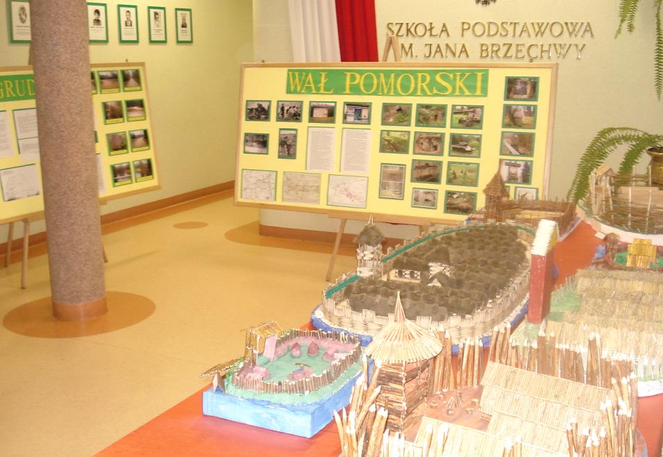 przygotowany był stół konferencyjny oraz wystawa dotycząca Wału Pomorskiego, miejscowości