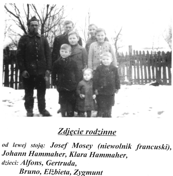 Jak ważna jest rodzinna więź, jak cenne są uczucia ludzkie, świadczyć może historia jednej z rodzin mieszkających w pobliżu Radawnicy, rodziny państwa Hammacher. A oto historia rodu. Do spotkania z rodziną państwa Hammacher skłoniło mnie planowane otwarcie Izby Pamięci – małego muzeum Radawnicy i okolicznych miejscowości. W swojej dotychczasowej pracy, zwracałam zawsze uwagę na wydarzenia, które były związane z walką o polskość na tych terenach. Taki charakter miały obchody 65 i 75 – lecia Szkoły Polskiej w Radawnicy, odsłonięcie tablicy pamiątkowej upamiętniającej jej istnienie. Historia tych terenów to nie tylko losy Polaków i ich walka o polskość. Mieszkali tutaj również ludzie innych narodowości, głównie Niemcy. Niektórzy z nich pozostali i również tworzyli historie tych terenów. W przedwojennej Radawnicy mieszkali zarówno Niemcy jak i Polacy. Wielu Polaków było członkami Związku Polaków w Niemczech. Po zakończeniu II wojny światowej, część Niemców wyjechała, a ci którzy czuli się Polakami zostali. Do Radawnicy przybyli osadnicy, ale była ich mniejszość. Bielawa, podobnie jak Krzywa Wieś, Kamień, była wsią, którą po wojnie opuścili wszyscy mieszkańcy. W swojej małej ojczyźnie pozostała tylko rodzina państwa Hammacher. Postanowiłam spotkać się i wysłuchać ich historii. Najstarszym przedstawicielem rodu jest pan Bruno Hammacher, urodził się przed II wojną światową. Jego wspomnienia, to obraz życia małej wsi w okresie powojennym, na Złotowszczyźnie, widziany oczyma bardzo młodego chłopca. Z wielką przyjemnością wysłuchałam jego barwnej opowieści, która momentami miała charakter bardzo osobisty. Jej zapis został autoryzowany. Obecna Bielawa nosiła kiedyś nazwę Marianhof, w okresie powojennym używano nazwy Marianowo. Rodzina Hammacher trafiła do Bielawy z miejscowości Niwy, w okolicach Chojnic. Przez krotki okres zamieszkiwała w Bugowie w okolicach Lipki. Ojciec pana Bruno, Joann, podobnie jak jego ojciec był kowalem, dzięki temu nie został wcielony do wojska. Nakazem władz niemieckich miał świadczyć usługi kowalskie dla okolicznej ludności. Matka pana Hammachera wspominała Bielawę jako spokojną wieś liczącą dziewiętnaście gospodarstw. Zamieszkiwali ją głównie Niemcy, tylko dwa gospodarstwa należały do rodzin polskich. Prawie wszyscy mieszkańcy tej małej miejscowości byli ewangelikami, poza rodziną państwa Hammacher, zamieszkiwały jeszcze dwie rodziny wyznania katolickiego. Właścicielem majątku w Bielawie był Max Morande. Po parcelacji w 1929 roku część majątku przejął Bernt, jego gospodarstwo liczyło 50 hektarów, co na ówczesne czasy było dość znacznym areałem. Po wybuchu II wojny światowej do większości gospodarstw zostali skierowani niewolnicy. Wśród nich byli Polacy, Rosjanie, Francuzi. Los niewolników był różny, przez większość gospodarzy byli traktowani bardzo życzliwie. Najgorszy był los tych, którzy trafili do majątku Bernta. Nie dość, że musieli pracować ponad ludzkie siły pod czujnym okiem nadzorcy, byli traktowani przez swojego chlebodawcę w nieludzki sposób. Po zakończonej pracy do majątku Bernta musieli się stawiać wszyscy niewolnicy pracujący w gospodarstwach w Bielawie. Nocowali w niebywale trudnych warunkach, w zimnym, zbudowanym z kamienia budynku, ogrodzonym na wysokość trzech metrów drutem kolczastym. Dwóm z nich, Rosjanom, udało się uciec. Ucieczka była możliwa dzięki pomocy pana Wiśniewskiego i Johana Hammachera. Jeden z uciekinierów wrócił z rosyjskim wojskiem, pamiętał o tych, którzy mu pomogli, starał się ich osłaniać przed czyhającym niebezpieczeństwem. Pan Hammacher pamięta bardzo młodą, z długim jasnym warkoczem, ukraińską dziewczynę, która jako niewolnik trafiła do rodziny Wiśniewskich. Ta młoda dziewczyna, po zajęciu Marianowa przez Rosjan, wielokrotnie hamowała zapędy rosyjskich żołnierzy, skorych do wydawania pochopnych wyroków. Uratowała syna swoich chlebodawców, który po urlopie nie wrócił na front. Zasłoniła go własnym ciałem, by nie dopuścić do rozstrzelania. Do państwa Hammacher, jako niewolnik, trafił Francuz Josef Mosey z miejscowości Lee. Z zawodu ogrodnik, swoje doświadczenie i umiejętności ogrodnicze przekazywał gospodyni. Każdą wolną od pracy w polu chwilę spędzał w przydomowym ogródku warzywnym, osobiście doglądając rosnących tam warzyw. Francuski niewolnik bardzo zżył się z domownikami. Jak wspomina pan Bruno, pracował razem z nimi i brał udział we wszystkich ważniejszych wydarzeniach rodzinnych. Razem z domownikami zasiadał do stołu, co było zakazane przez władze niemieckie. Jako niewolnik miał prawo do otrzymania dwóch paczek w ciągu miesiąca, jadnej z Czerwonego Krzyża i jednej od rodziny z Francji. Te paczki były wielka atrakcją dla dzieci, bo to właśnie one konsumowały większość otrzymywanych słodyczy. W grudniu 1944 roku władze niemieckie nakazały opuszczenie gospodarstw i udanie się do Rzeszy. Rodziny ładowały dorobek całego życia na wozy drabiniaste i wyruszały w podróż, która czasami trwała miesiącami. W Marianowie pozostały, poza państwem Hammacher, trzy inne rodziny: Wiśniewski, Greger, Mok (za szosą). Zbliżał się front i wszyscy czuli zbliżające się niebezpieczeństwo i niepewność. Data 6 lutego 1945 roku, zmieniła całkowicie dotychczasowe życie rodziny Hammacher w Marianowie. Tego dnia Rosjanie nakazali opuścić gospodarstwa i udać się do Zlotowa. Państwo Hammacher do Złotowa nie dojechali, udali się do Dzierżążni, z uwagi na zaminowane skrzyżowanie w Nowym Dworze. Czy skrzyżowanie było faktycznie zaminowane, trudno dziś dociec, tak pogłoska krążyła wówczas wśród miejscowej ludności. Okres, kiedy przechodził front, był chyba najtrudniejszym okresem dla mieszkających tutaj ludzi. Nieopodal trwały krwawe walki.